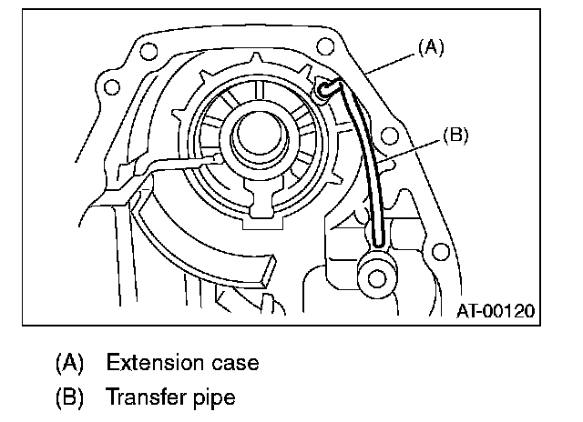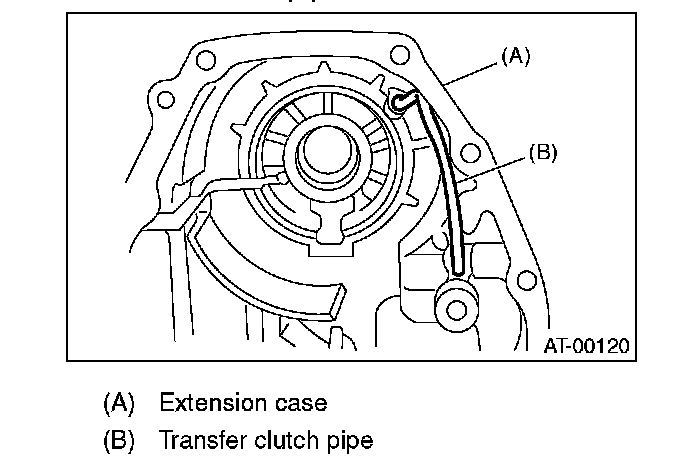 3) Install the transfer clutch pipe to the extension case while being careful not to deform the pipe.