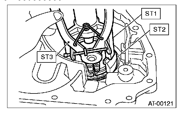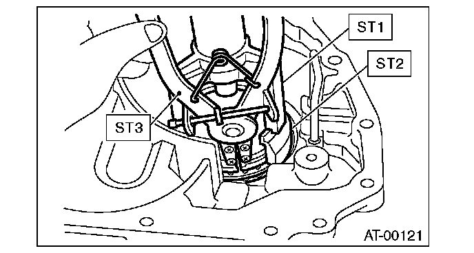 6) Using ST1, ST2 and ST3, attach the snap ring.