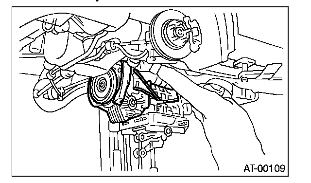 (1) Lift up the transmission gradually using transmission jack.