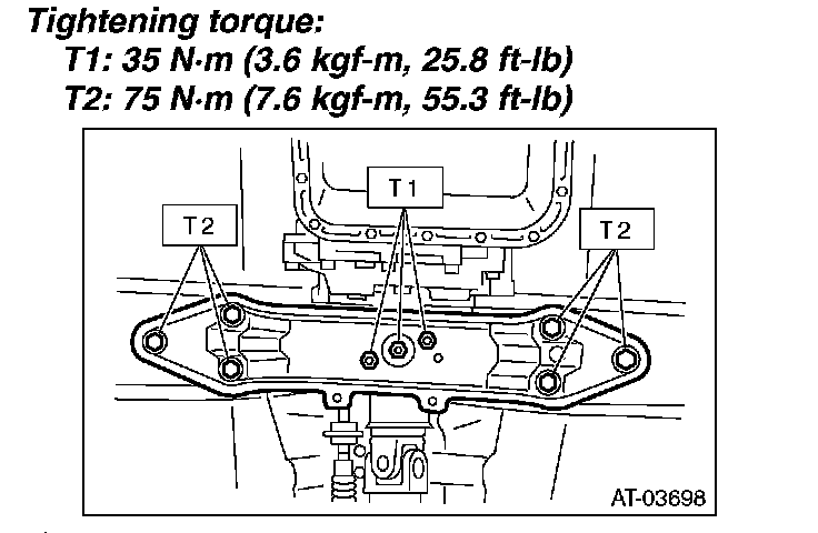 5) Install the transmission rear crossmember.