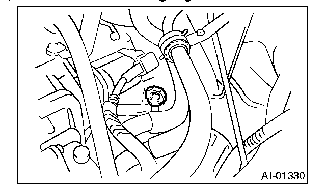 29) Install the oil charge pipe, and connect the ATF cooler hoses to the pipe.