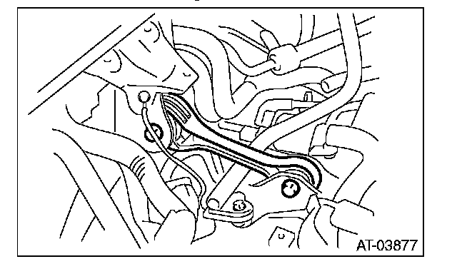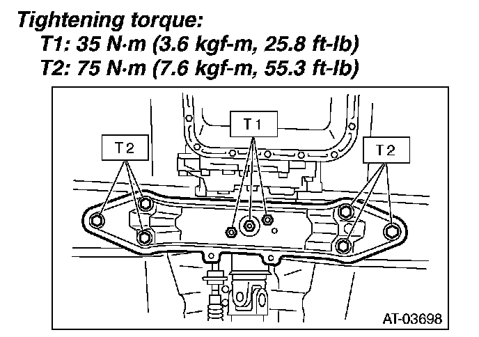 NOTE: Make sure that the support plate of transmission jack does not touch the oil pan.