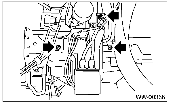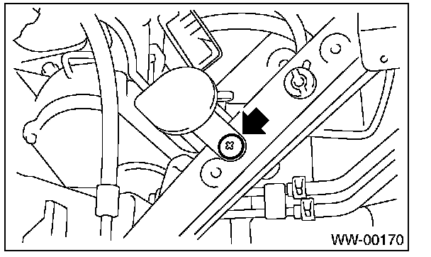 5. Remove the two bolts and one nut, hose, connector and washer motor cover, and then remove the washer tank.