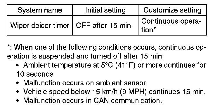 Wiper deicer system can be customized on the Subaru Select Monitor.