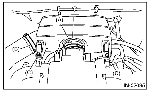 4. Remove the bolt (C) which secures air intake chamber to the stay.