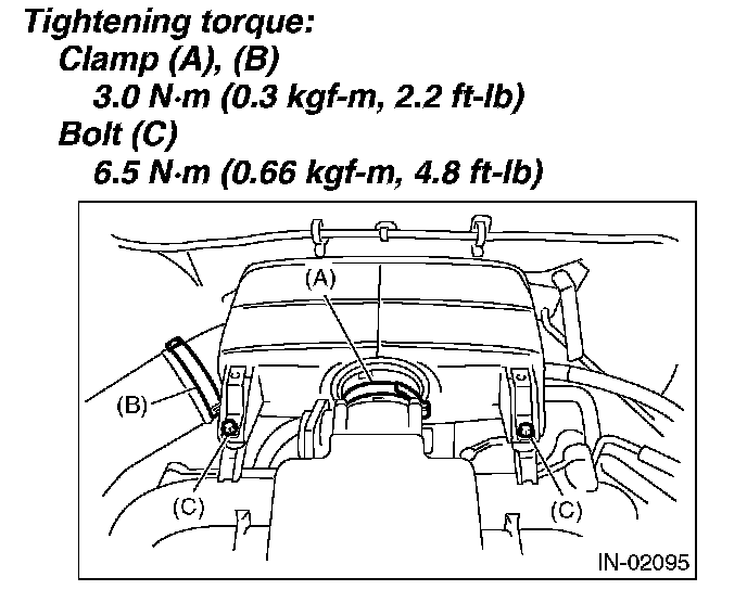 Clamp (A), (B): 3.0 N.m (0.3 kgf.m, 2.2 ft.lb)