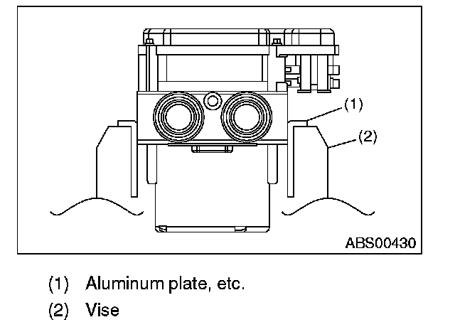 2) To prevent entry of foreign objects and brake fluid leakage, plug the oil pressure port of the ABSCM & H/U using a screw plug, etc.