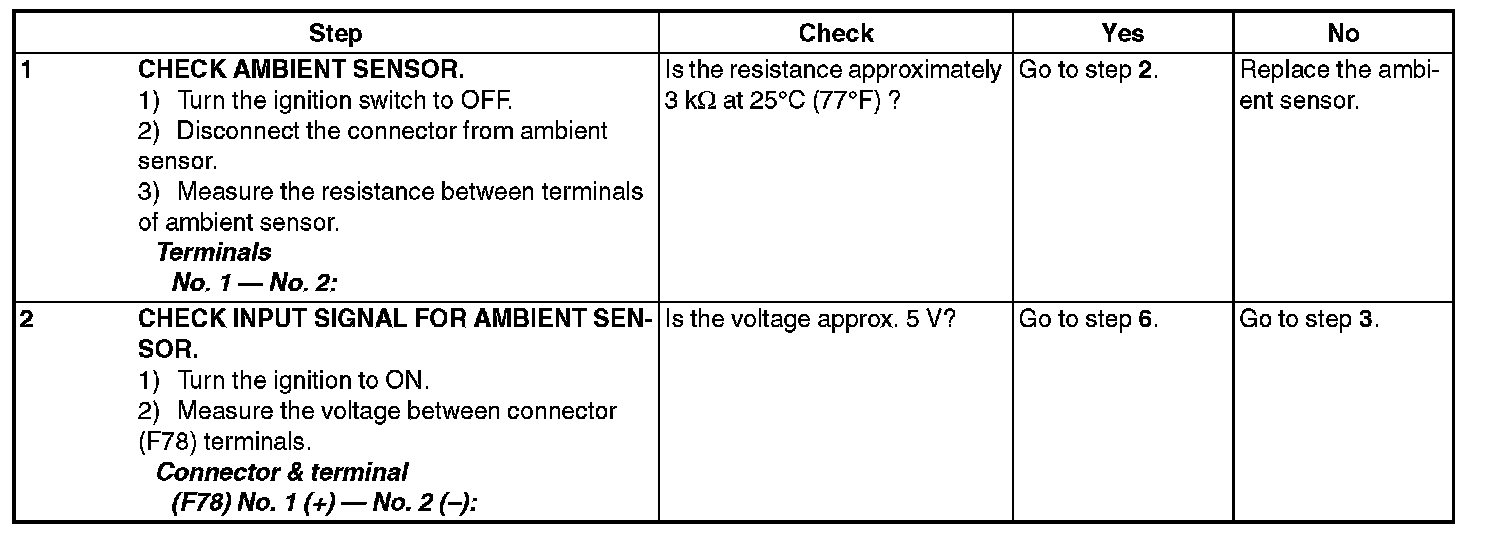 Failure related to the ambient sensor is indicated in self-diagnosis.