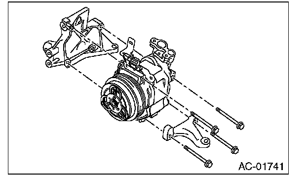 2. Replace the O-rings on low-/high-pressure hoses with new parts, then apply compressor oil.