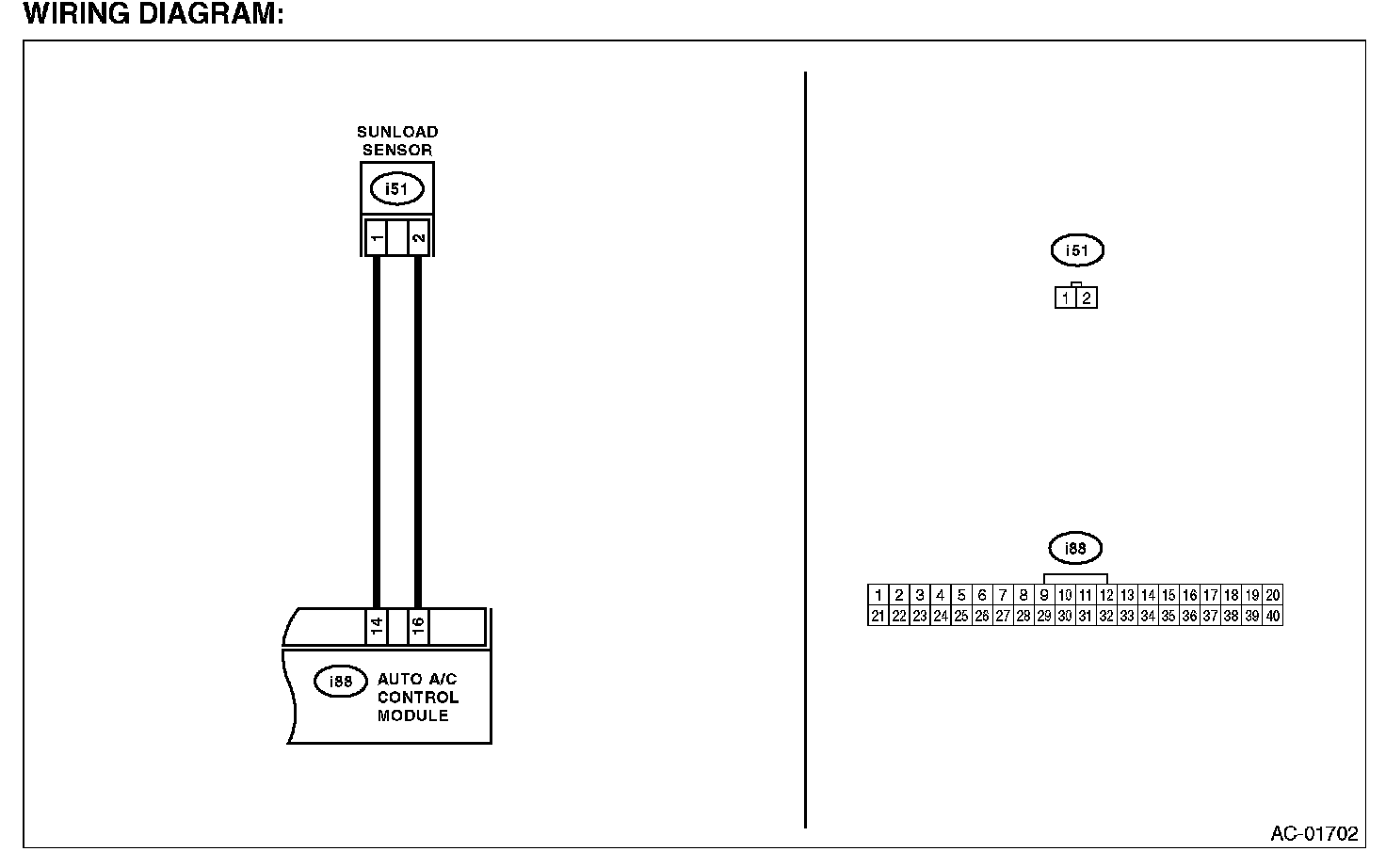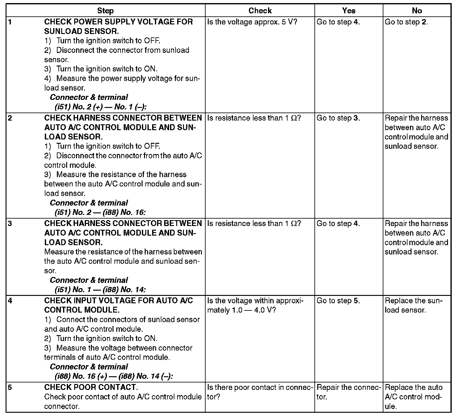 NOTE: When the sunload sensor check is performed indoors or in the shade, it could be diagnosed as having an open circuit. Always check the sunload sensor with the sun shining on it.