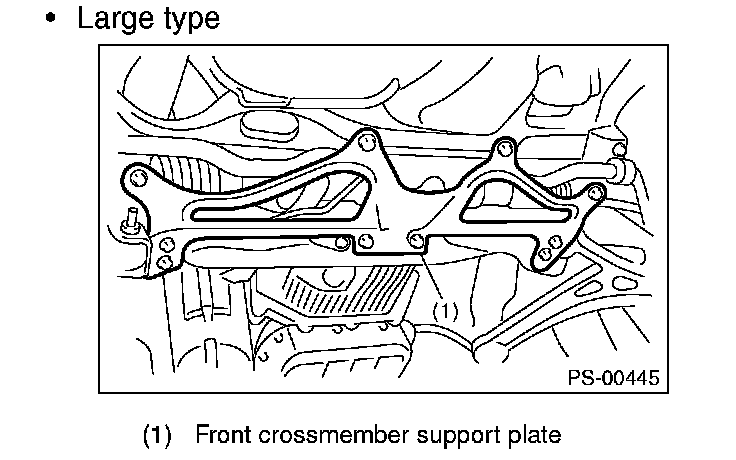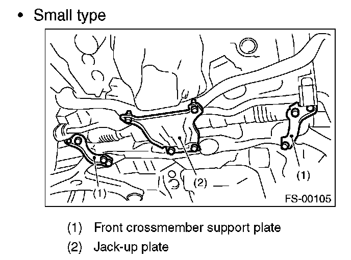 2) Lift up the vehicle, and then remove the front crossmember support plate and jack-up plate.
