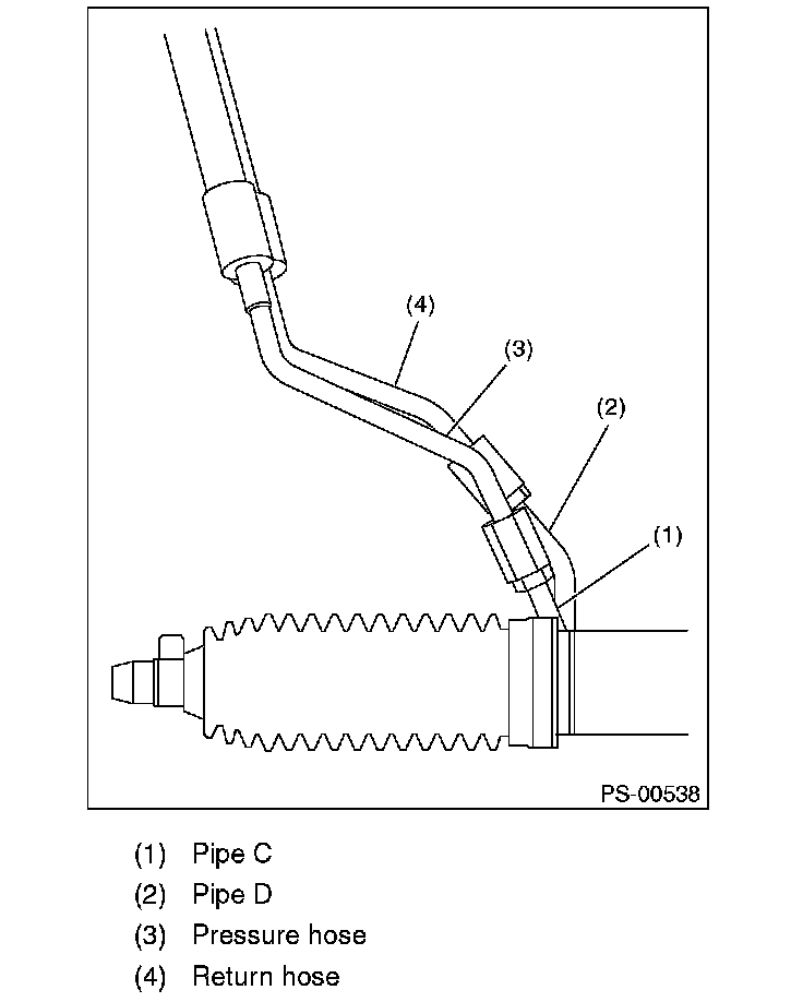 7) Tighten the pressure hose and pipe C, and the return hose and pipe D.