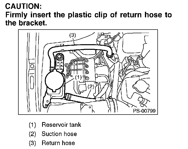 Firmly insert the plastic clip of return hose to the bracket.