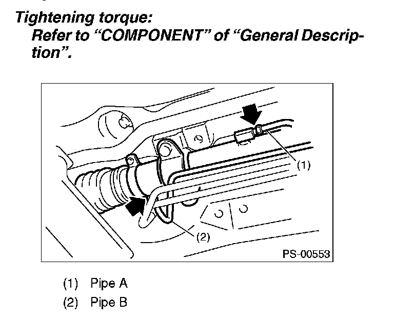 15) Finally, check the clearance between pipes or hoses as shown in the figure indicated in "General Diagnostic Table".