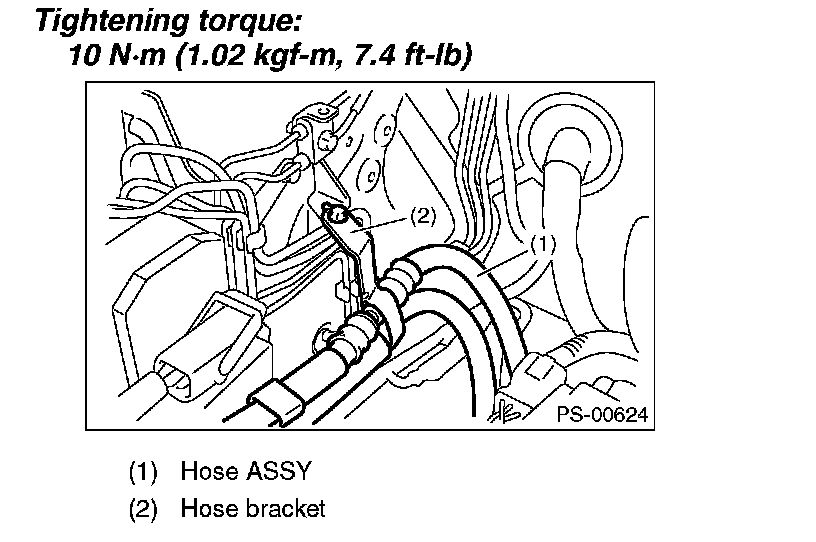 1) Temporarily tighten the hose bracket bolt.