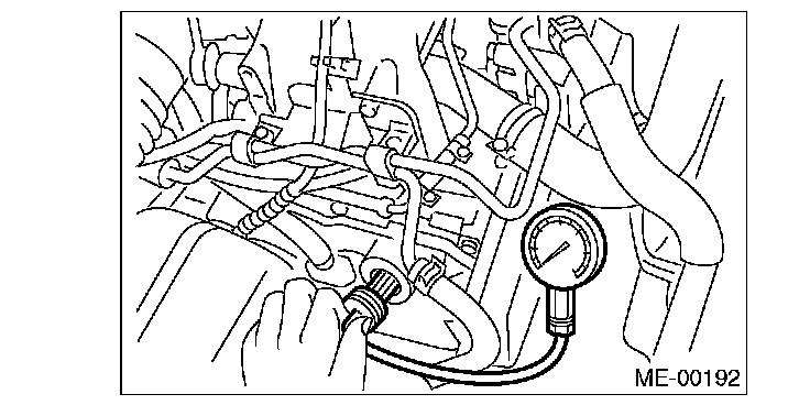 8) Crank the engine by the starter motor, and read the maximum value on the gauge when the needle of gauge is steady.