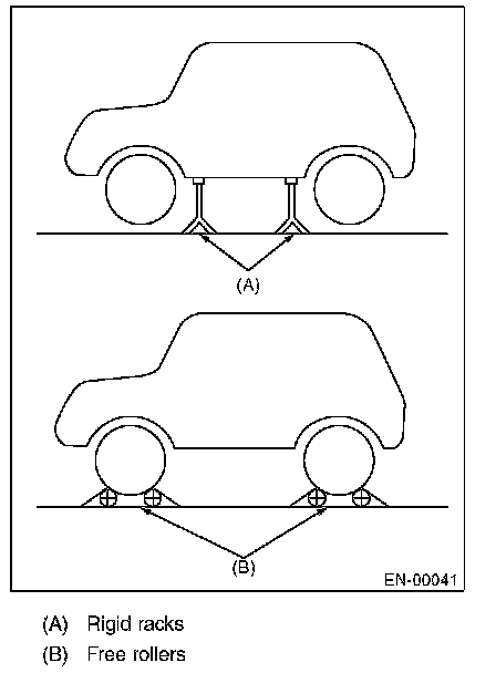 2. Lift up the vehicle using a garage jack and place it on rigid racks, or drive the vehicle onto free rollers.