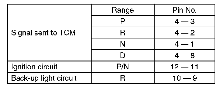 3) Check that there is continuity at equal points when the select lever is moved 1.5° in both directions from the "N" range.