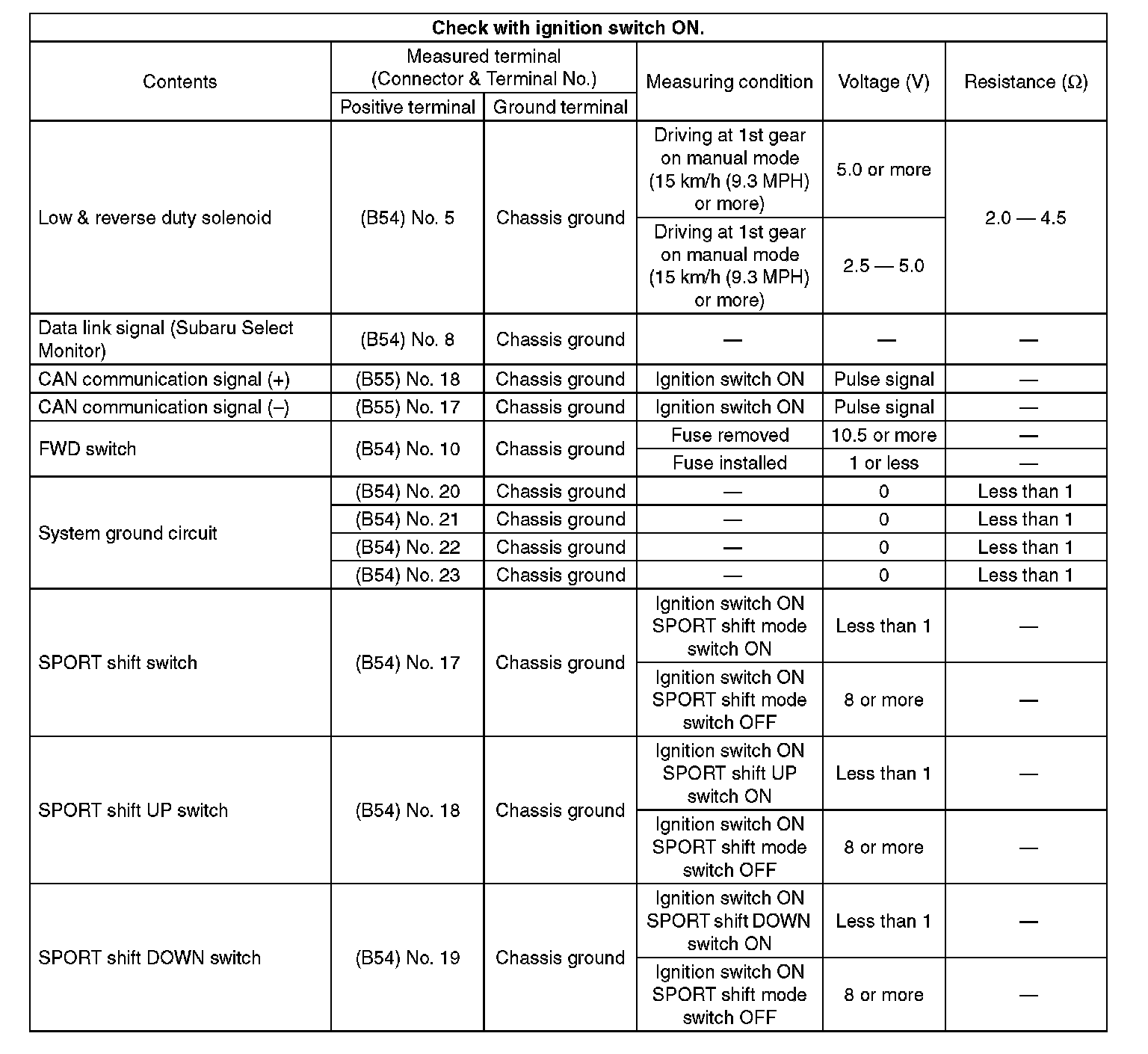 Transmission Control Module (TCM) I/O Signal