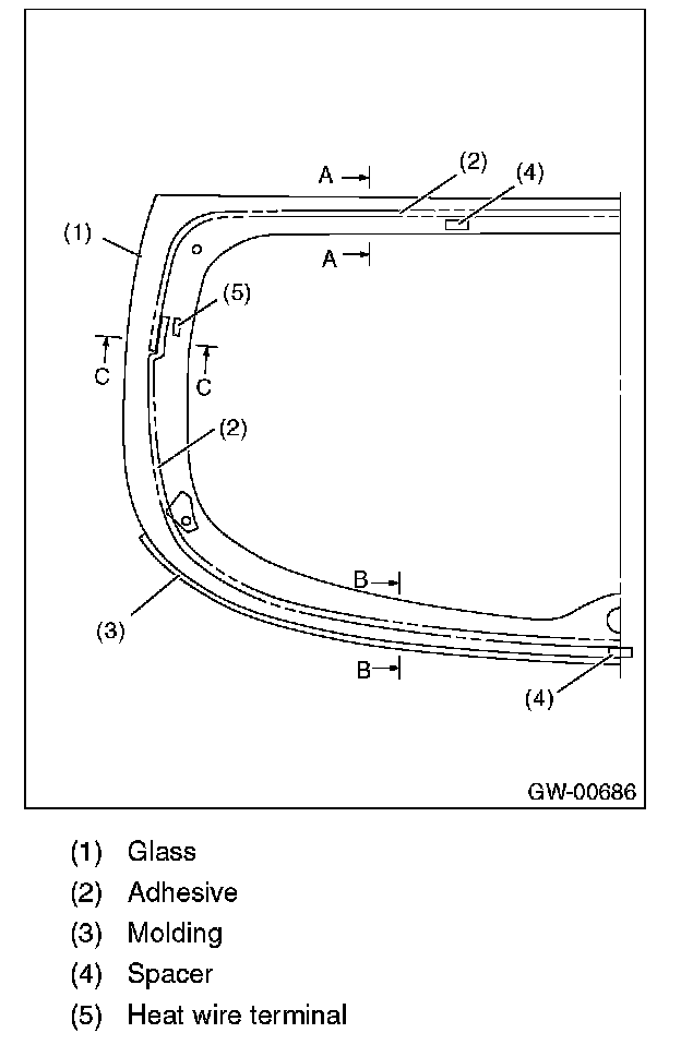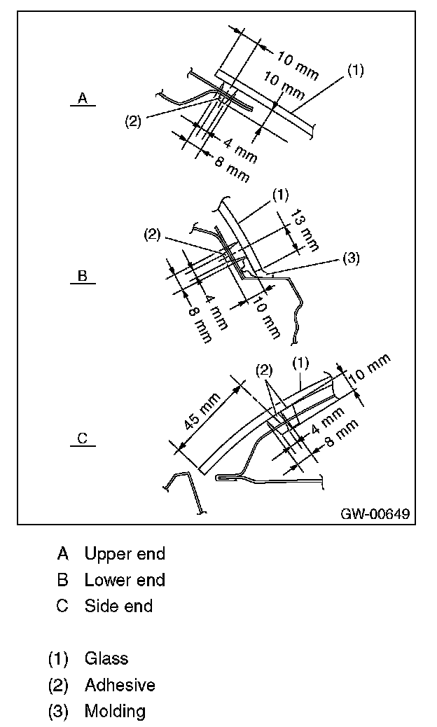 - For minimum drying time and vehicle standing time before driving after bonding, follow instructions or instruction manual from the adhesive manufacturer.
