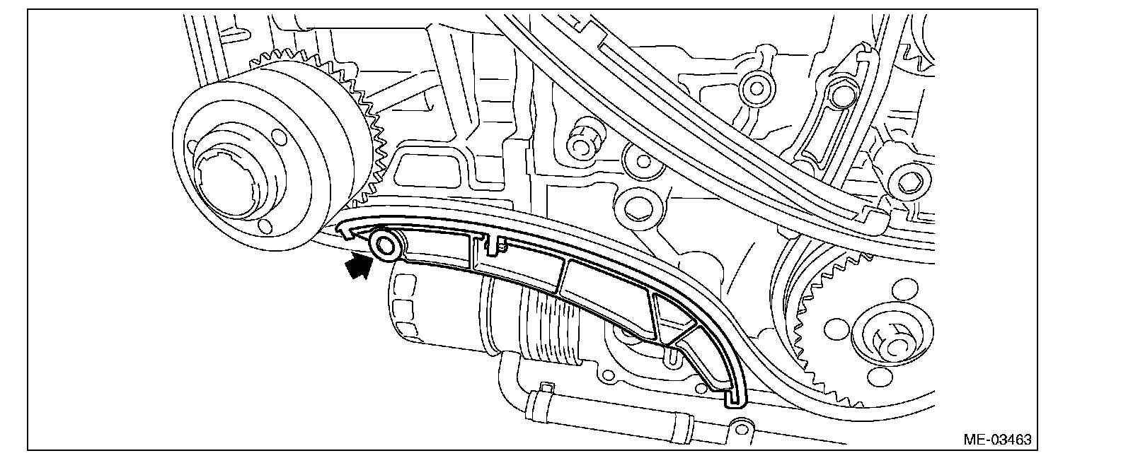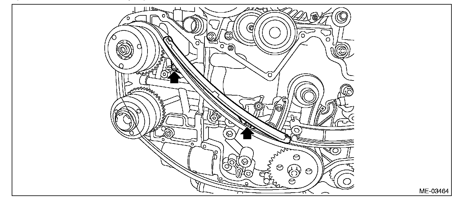 ^ After removal, arrange the timing chain components in proper order, to prevent confusion.