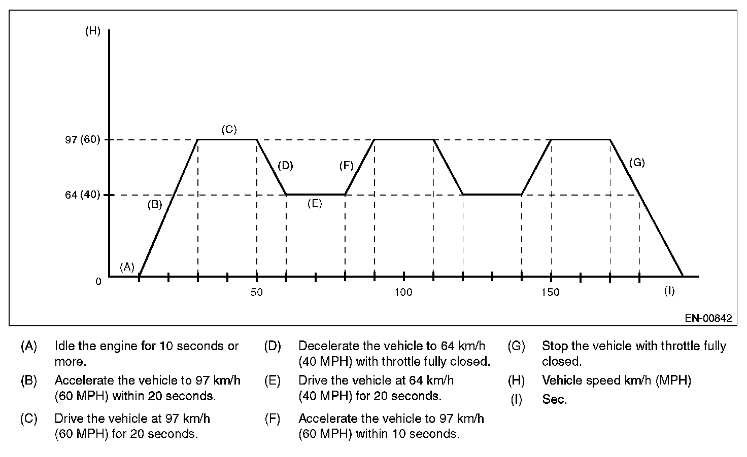 2. DRIVE CYCLE A DRIVE THE VEHICLE WITH 80 KM/H (50 MPH) FOR 20 MINUTES, AND IDLE THE ENGINE FOR A MINUTE.