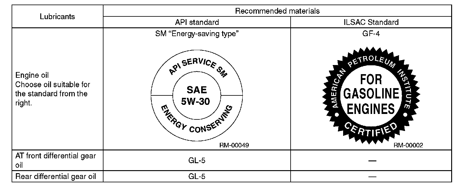 Use either lubricants in the table below or equivalent lubricants. See the table below to choose the correct SAE viscosity.