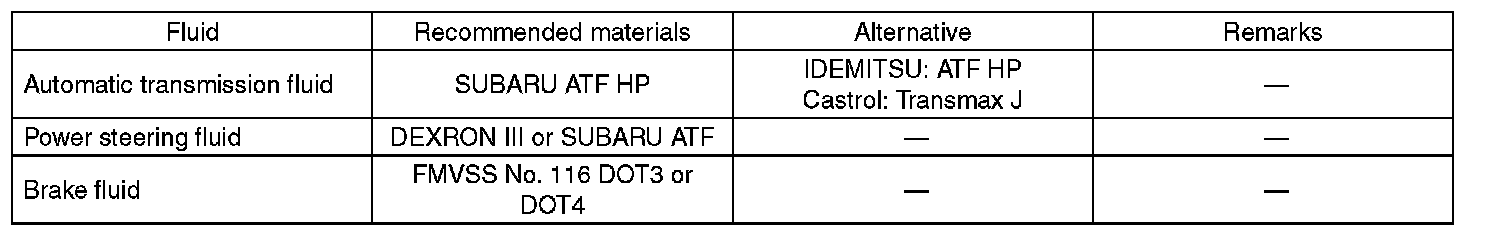 CAUTION: Always use the recommended or equivalent ATF. Using material except recommended one or substitute would cause trouble.