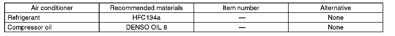 Standard air conditioners on Subaru vehicles use HFC134a refrigerant. Do not mix it with other refrigerants. Also, do not use any compressor oil other than DENSO OIL 8.
