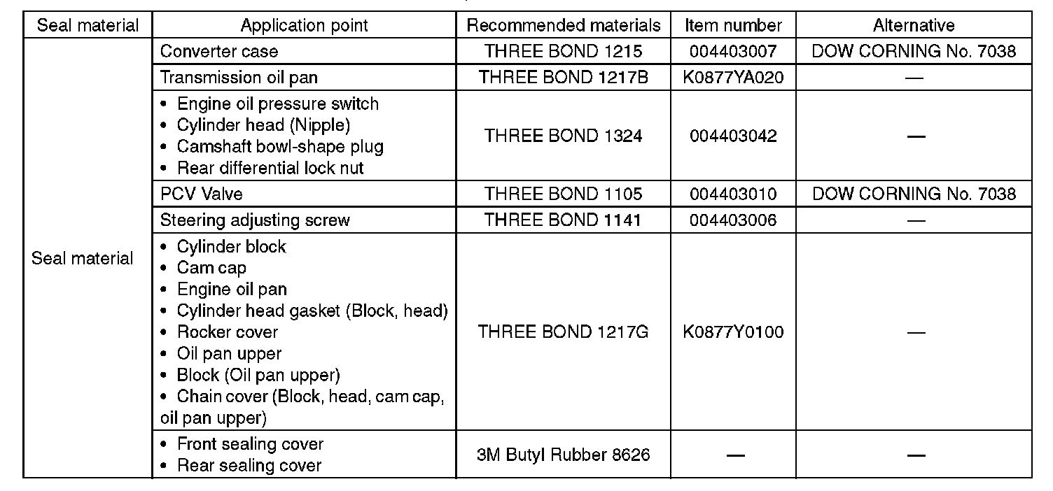 To insure the best performance, always use the specified oil, gasoline, adhesive, sealant, etc. or a substitute of equivalent quality.