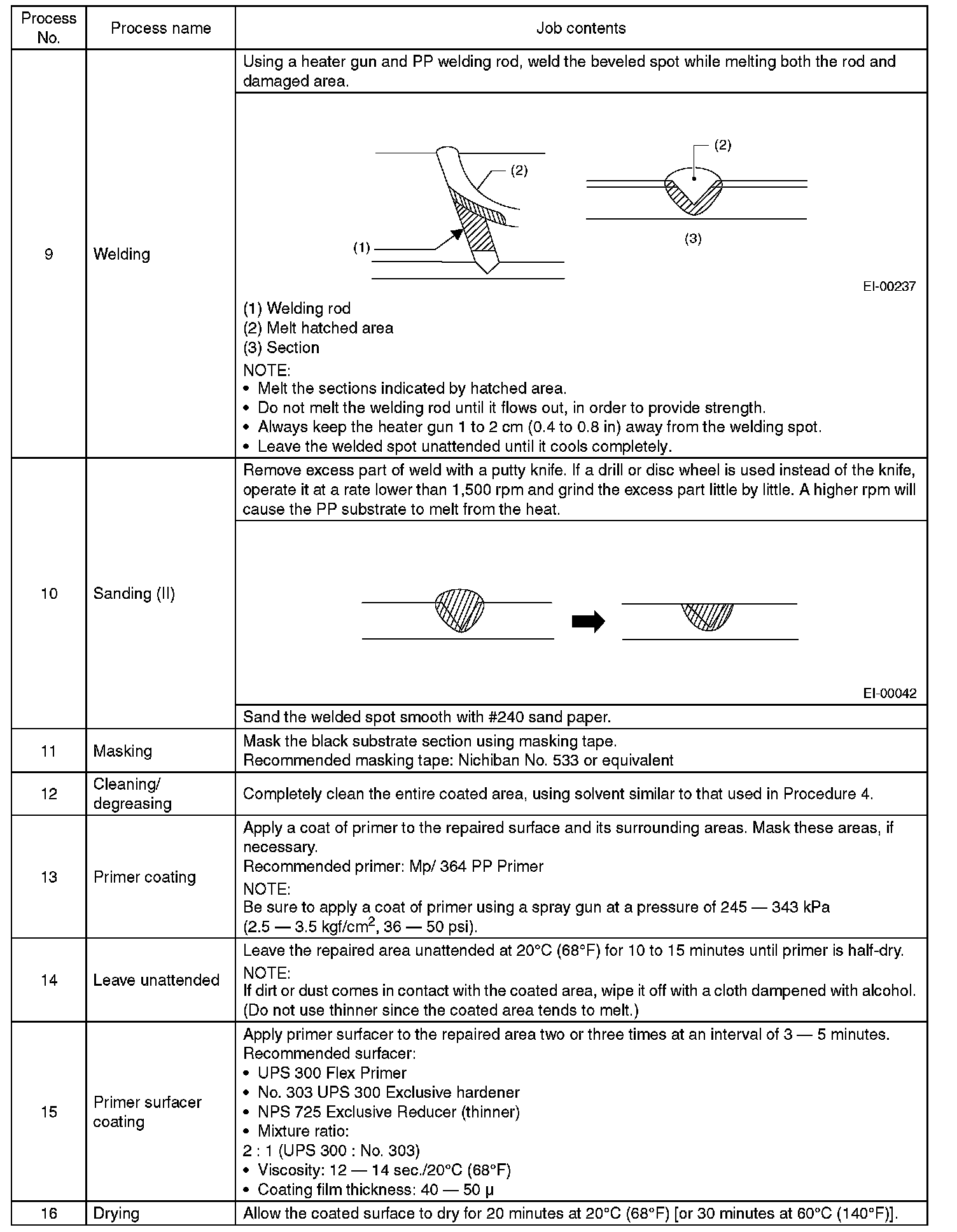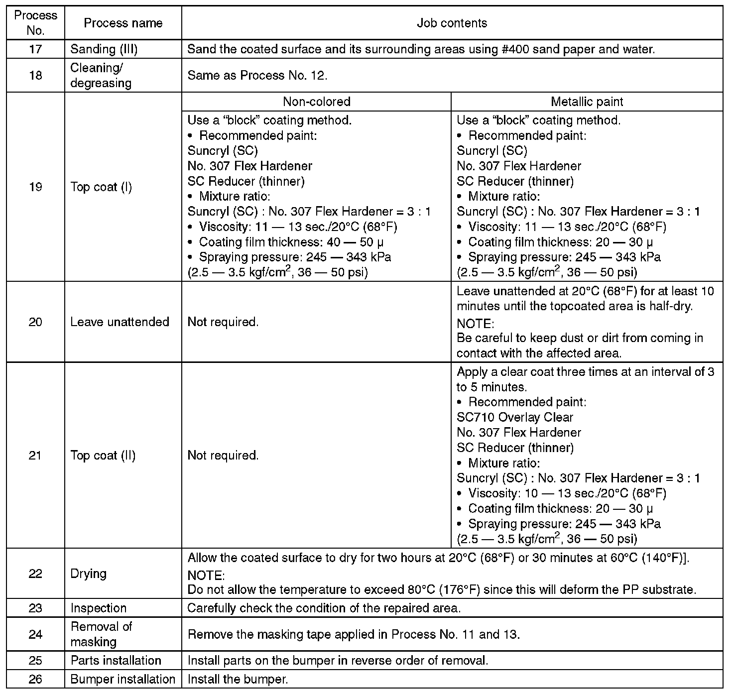 2. REPAIR INSTRUCTIONS FOR COLORED PP BUMPER