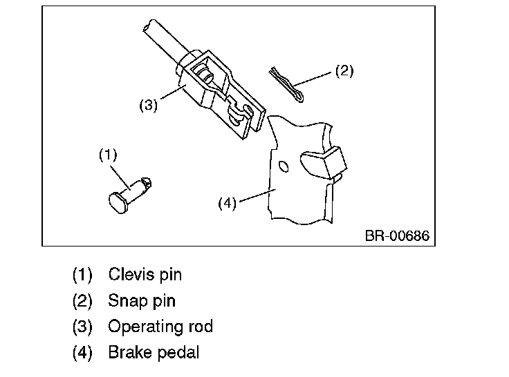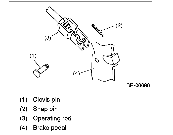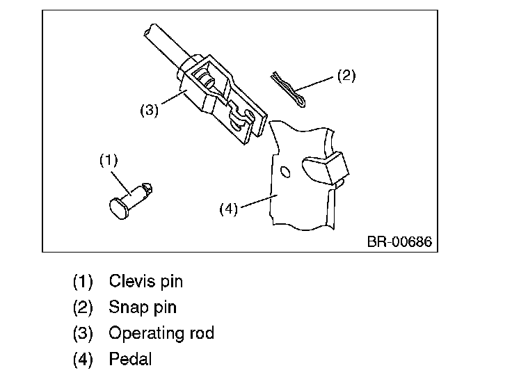 3) Remove the clevis pin which secures the brake pedal and operating rod.
