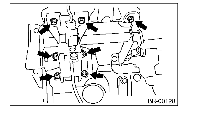 4) Remove the bolts and nuts which secure the brake pedal bracket.
