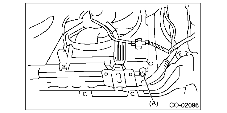 4) Remove the drain plug (A) to drain engine coolant into container.