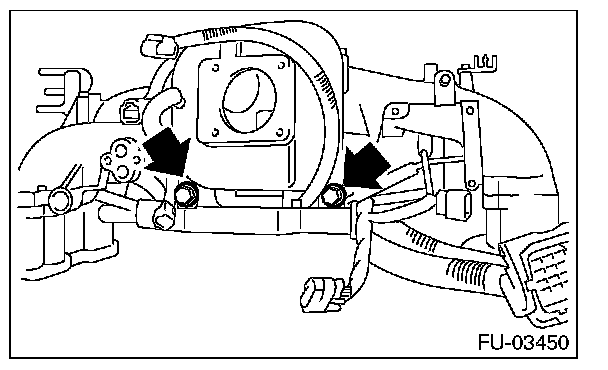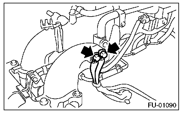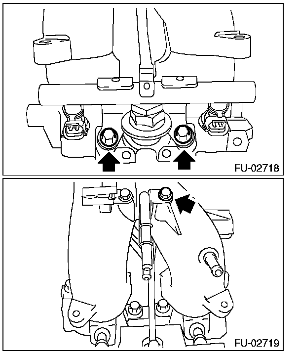 18. Remove the bolts which install fuel pipes on intake manifold.