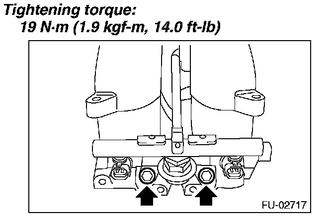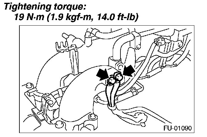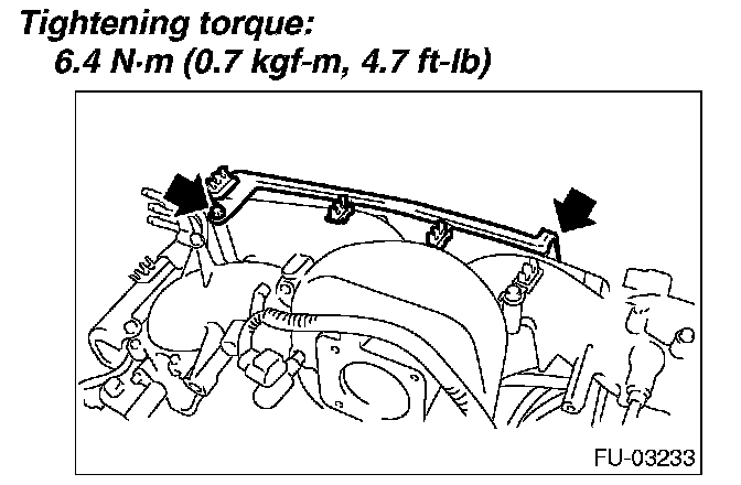 5. Tighten the bolts which install fuel injector pipes on intake manifold.