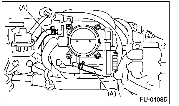 6. Disconnect the engine coolant hoses (A) from throttle body.