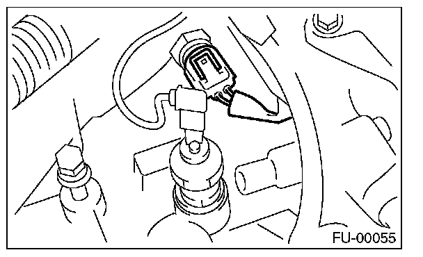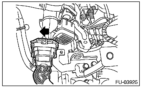 1. Disconnect the quick connector on the fuel delivery line by pushing the ST in the direction of the arrow.