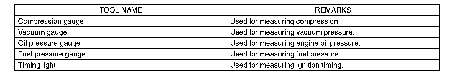Engine: Tools and Equipment