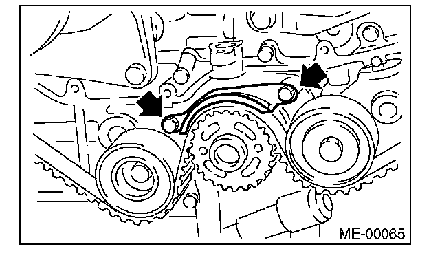1) Temporarily tighten the bolts mounting the timing belt guide.