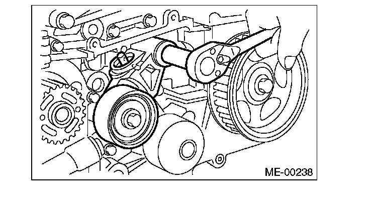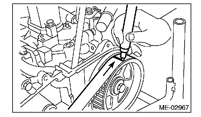 ^ Be careful not to let oil, grease or coolant contact the timing belt. Remove quickly and thoroughly if this happens.