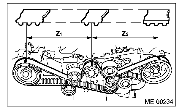 1) Check the timing belt teeth for breaks, cracks or wear. If any fault is found, replace the timing belt.