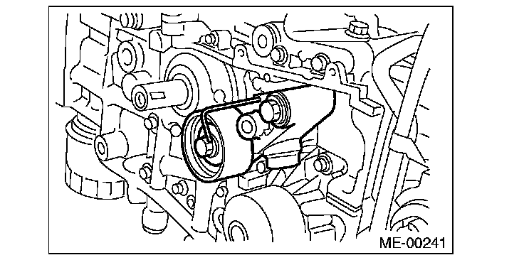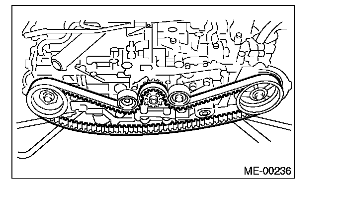 2) Check the condition on the back surface of the timing belt. If cracks are found, replace the timing belt.