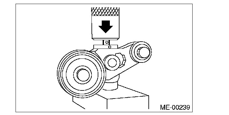 1) Check the mating surfaces of timing belt and contact point of adjuster rod for abnormal wear or scratches. Replace the automatic belt tension adjuster assembly with a new part if faulty.