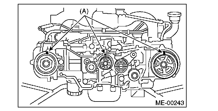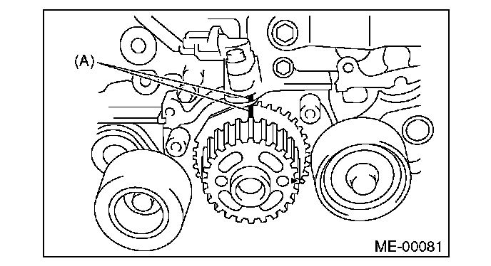 2) Align the mark (A) on crank sprocket with the mark on oil pump cover at cylinder block.