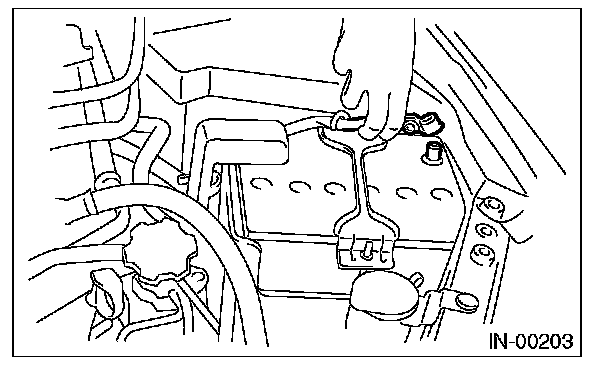 8. Remove the harness band (B) which holds the engine harness to injector pipe.