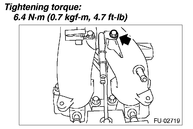 8. Remove the bolt which holds fuel injector pipe onto intake manifold.