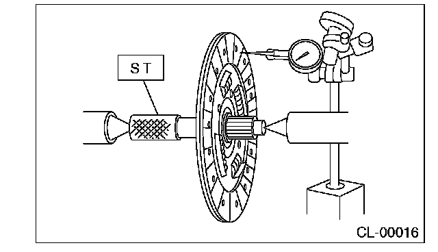 4) Deflection on facing: If deflection exceeds the specified value at the outer circumference of the facing, replace the clutch disc.