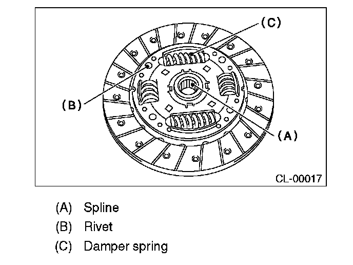 5) If there is spline wear, loose rivets, failed damper springs, etc., replace the clutch disc.