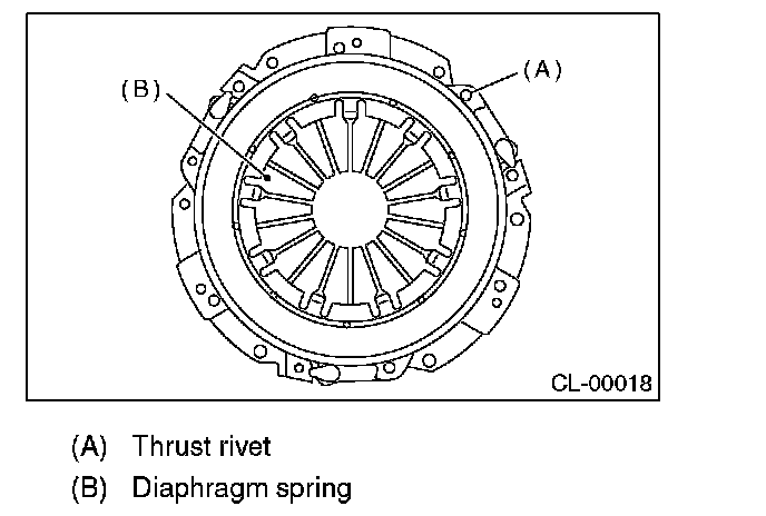 2) Damaged or worn bearing contact area at the center of diaphragm spring